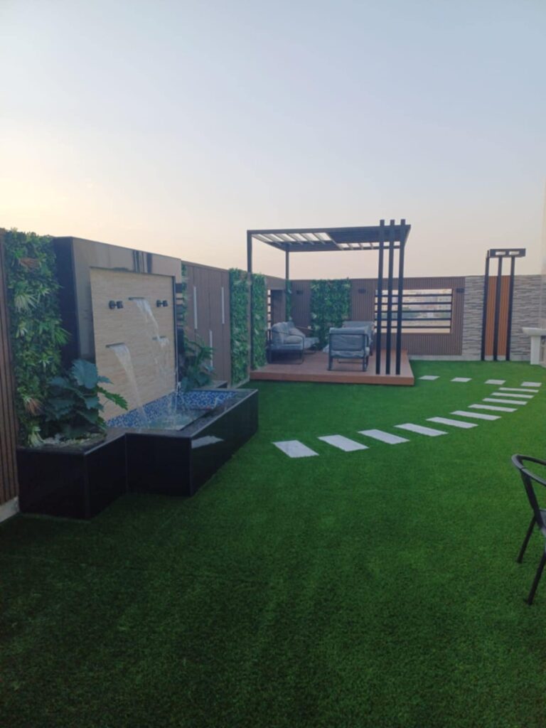 تركيب العشب الصناعي: تقدم زهرة البستان خدمات تركيب العشب الصناعي، بما في ذلك إعداد الأرضية، وتركيب العشب الصناعي، وتنظيف الموقع.